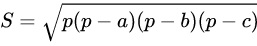 其中:p=(a+b+c)/2 ,a,b,c为三角形三条边的长度